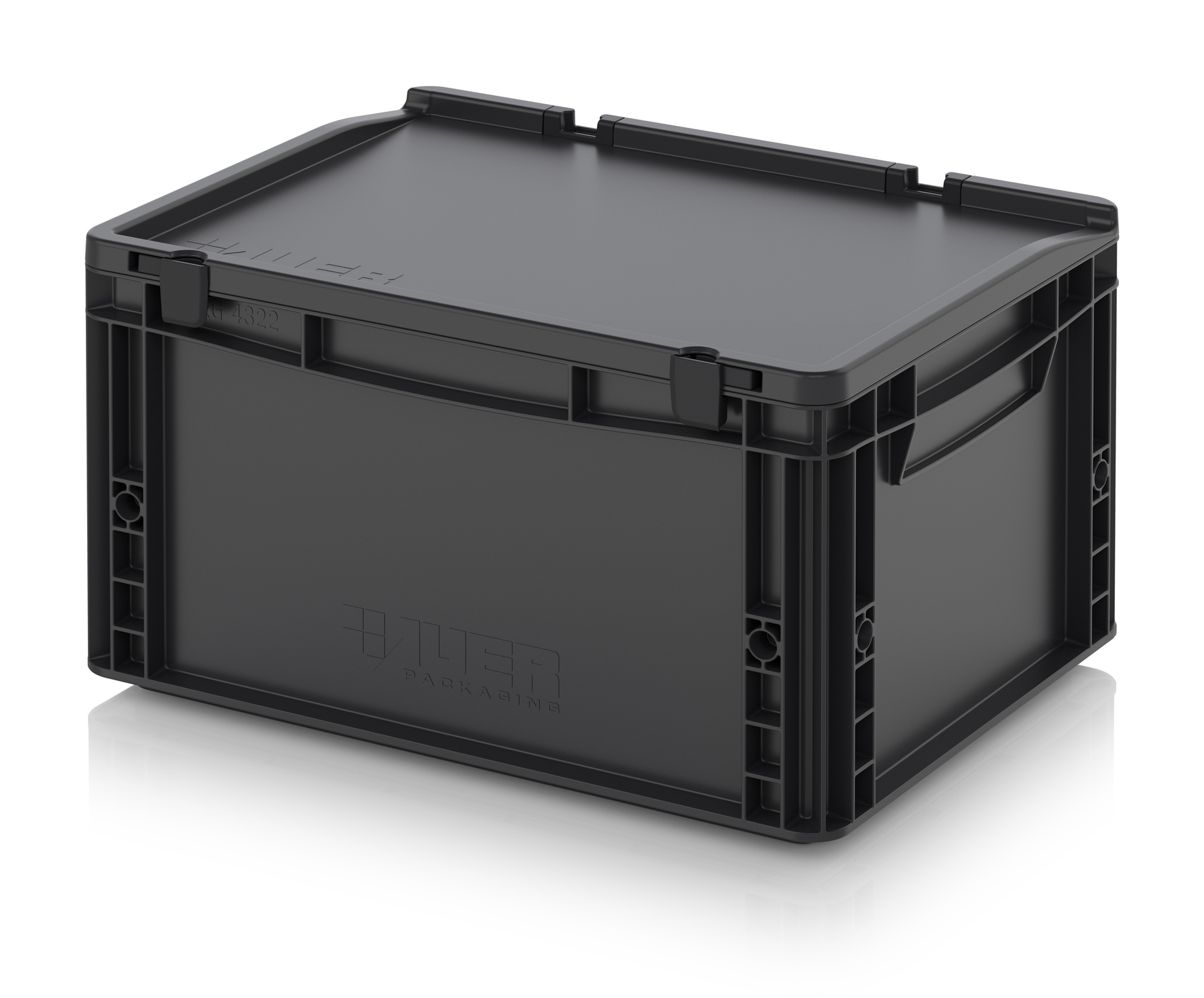 Евроконтейнер с ESD-защитой производства компании AUER Packaging изготавливается из антистатической пластмассы, что делает его пригодным, в частности, для надежного хранения и транспортировки электронной продукции.