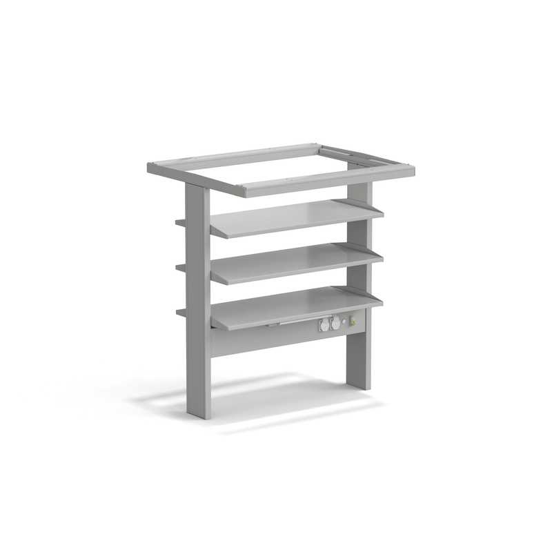 Стеллаж островной предназначен для комплектации пристенных столов и служит для увеличения рабочей площади стола, ярусности размещения лабораторного оборудования и лабораторной посуды.