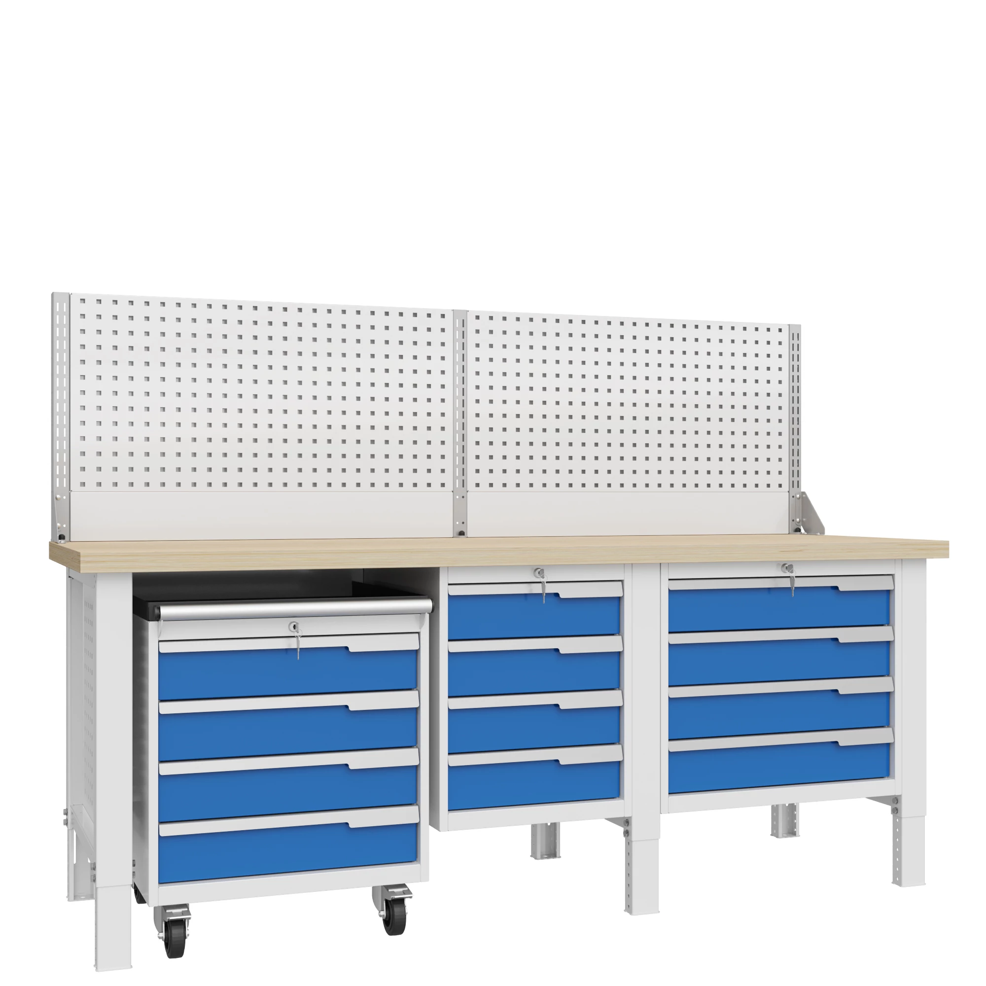 Рама верстака выполнена из холоднокатаной стали толщиной 2мм, модули - из стали 0,8мм.