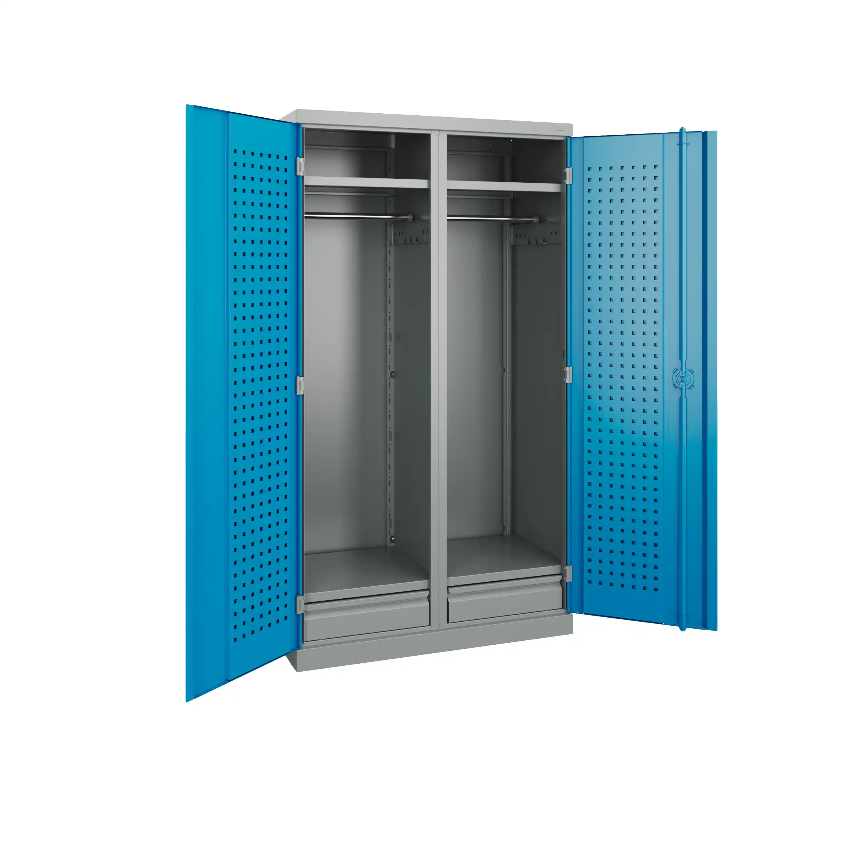 Шкаф инструментальный серии Technic предназначен для хранения оснастки, приспособлений, инструмента и одежды на рабочих местах в мастерских, цехах и других производственных зонах. Шкаф изготовлен из листовой стали и обеспечивает надежное запирание дверей ригельной системой.