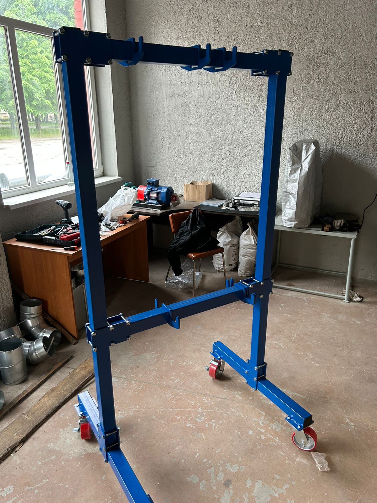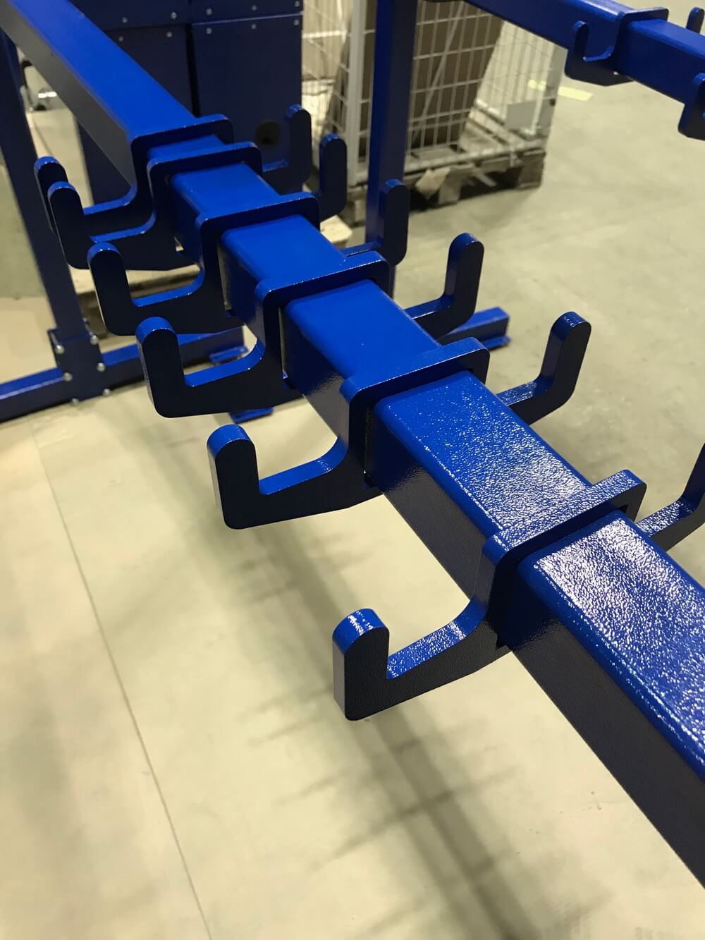• Стеллаж для хранения строп на колесах может перемещаться из одного производственного помещения в другое.