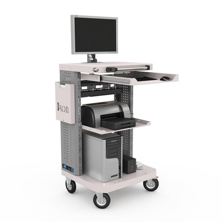Стойки тележки имеют перфорацию для крепления различных держателей и крючков, а также фиксации кабелей при помощи хомутов.