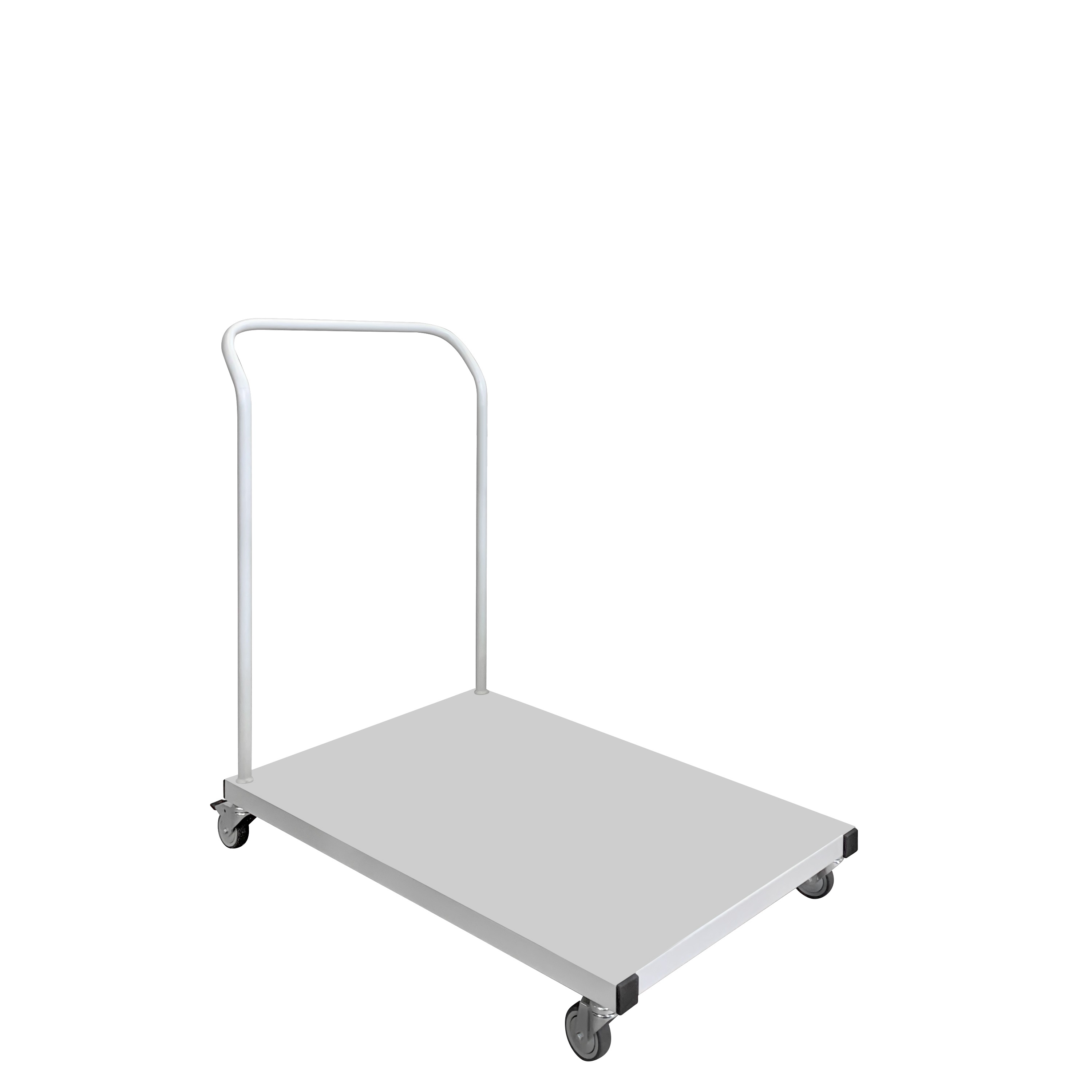 Все элементы окрашены эпоксидно-порошковым покрытием RAL 7035, а также представлены дополнительно в двух цветах на выбор. Распределенная нагрузка на тележку — до 120 кг.